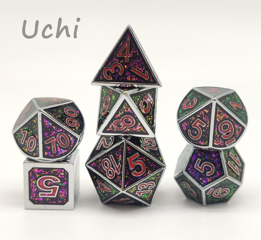 Kompletny zestaw siedmiu wielościennych kości o ostrych krawędziach, ręcznie odlewanych, polerowanych i szlifowanych do niezwykłej delikatności.Ręcznie robione, ręcznie szlifowane, ręcznie polerowane kości o ostrych krawędziach.Siedem wielościennych kości.Ręcznie robione i ręcznie grawerowane.Zalecane do stosowania w tacach na kości.